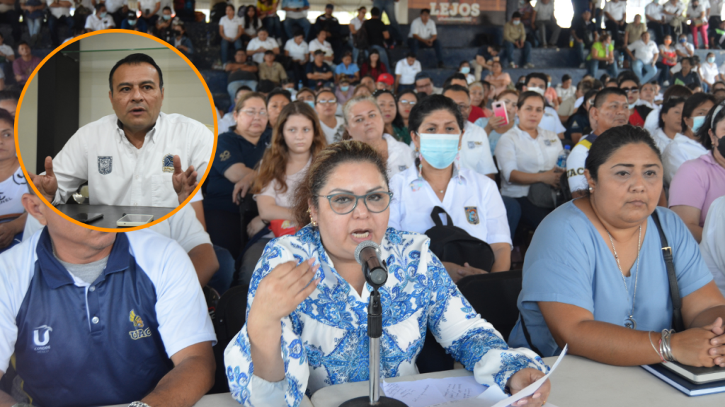 Otros, aprovecharon la ocasión para enfrentar a la líder Escobedo Pech, al acusarla de hacer lo que quiere con las plazas laborales y ser ella quien viola los derechos de los trabajadores. “Tú también violas los estatutos, porque uno de nuestros derechos es ser escuchados, y hace más de ocho meses que he pedido una cita y hasta hoy no he podido hablar contigo”, le reprochó una.