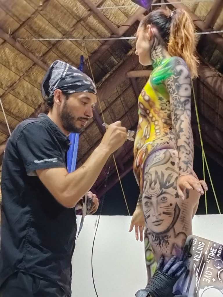 Cancún.- La práctica de la pintura corporal con fines artísticos, mejor conocida como «body paint», ha aumentado en la ciudad, debido a que muchas empresas han comenzado a hacer uso de este arte, para promocionar sus productos.