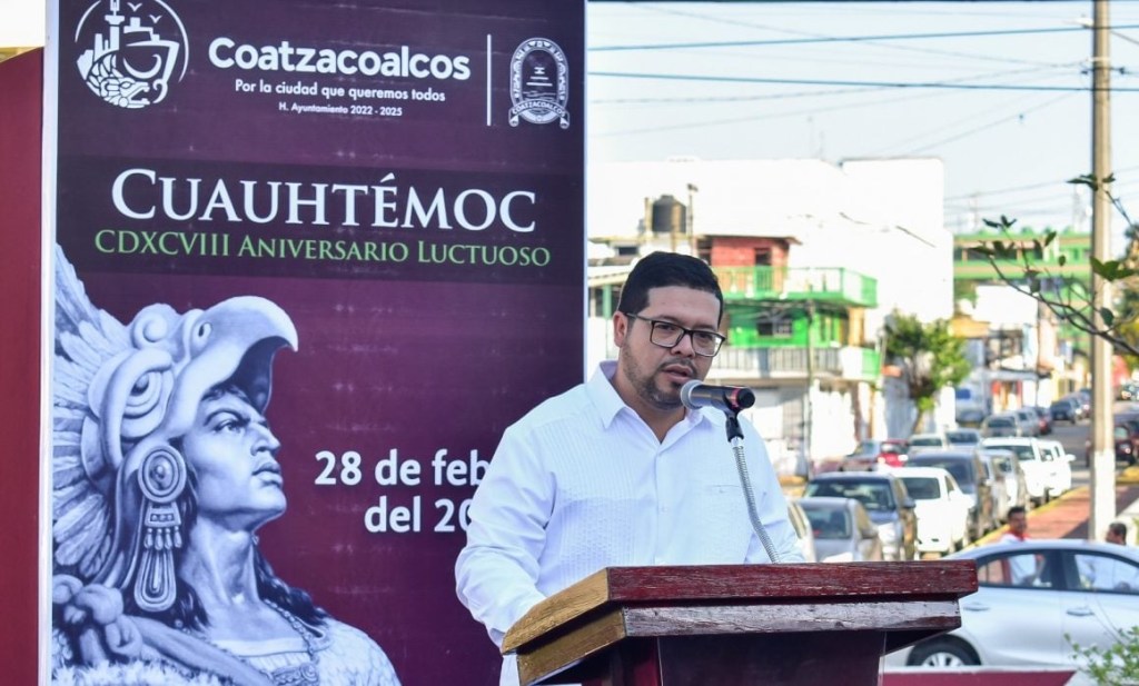 COATZACOALCOS, Ver., 28 de febrero de 2023.- Con la colocación de una ofrenda floral, funcionarios del Ayuntamiento de Coatzacoalcos encabezados por Amado Cruz Malpica, así como autoridades navales, educativas y alumnos, rindieron homenaje a Cuauhtémoc, el último tlatoani mexica, en su 498 aniversario luctuoso.