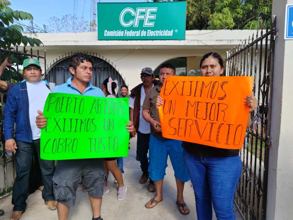 Cerca de 100 personas, pobladores de al menos tres comunidades de este municipio, se manifestaron esta mañana, en las oficinas de la Comisión Federal de Electricidad (CFE), en contra de las irregularidades que presenta el servicio que brinda esta paraestatal, y también sus cobros excesivos.