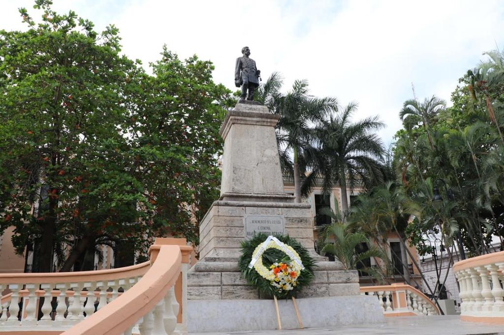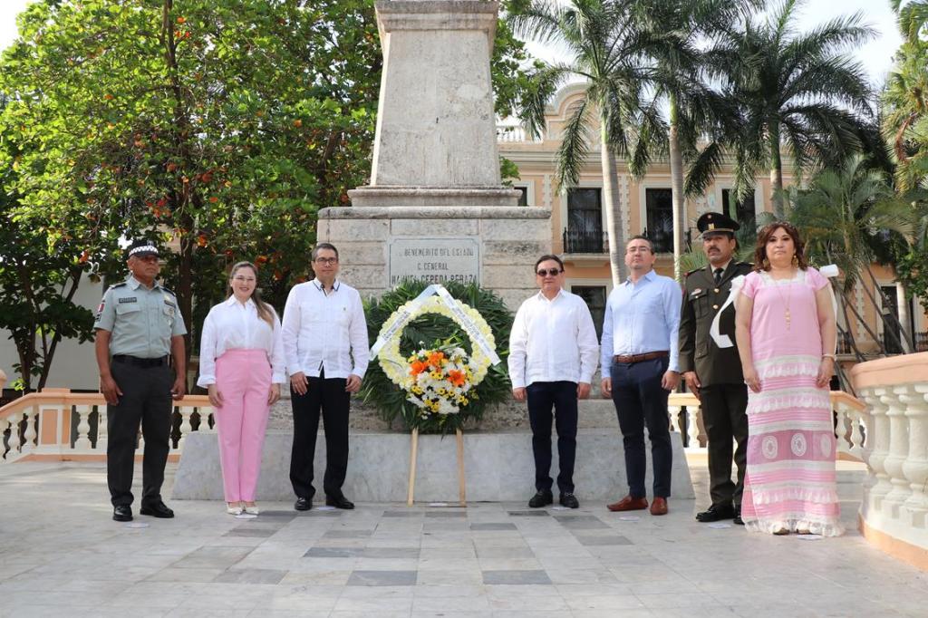 En encabezados por el rector de la Universidad Autónoma de Yucatán, Carlos Alberto Estrada Pinto y el titular de la Secretaría de Educación del Gobierno del Estado, Liborio Vidal Aguilar, los representantes de los tres poderes del estado colocaron una ofrenda floral y realizaron una guardia de honor ante el monumento del General yucateco.