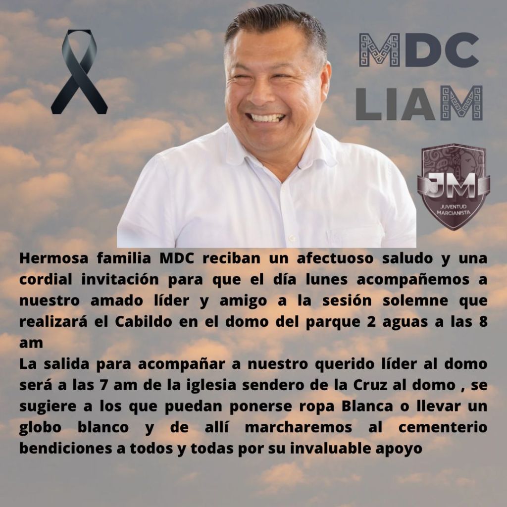 De antemano, la familia de Marciano Dzul, está convocando a la población para que los acompañen a trasladar sus restos hasta la el domo del parque Dos Aguas, donde se llevará a cabo una sesión solemne de cabildo a las 8 de la mañana, para lo cual, el cortejo fúnebre partirá desde la iglesia «El sendero de la Cruz”, hacia ese lugar, a partir de las 7 de la mañana. En la convocatoria de la familia, se sugiere a los participantes a asistir con ropa color blanco o con un globo blanco.