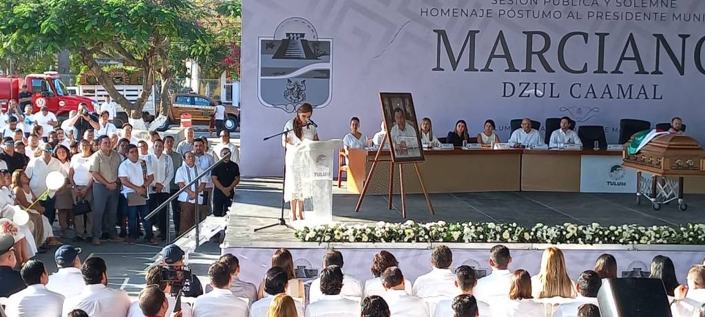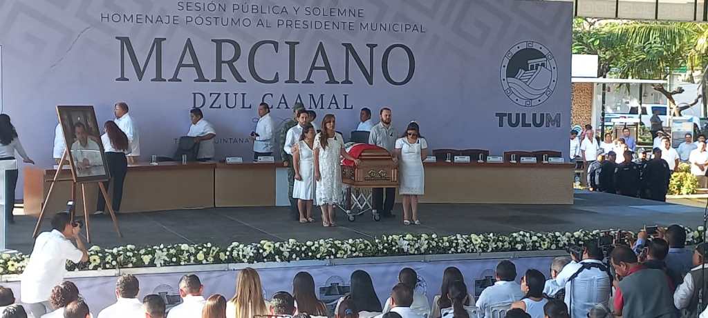Esta mañana, durante la sesión solemne celebrada en el Parque Dos Aguas, el Ayuntamiento de Tulum declaró tres días de luto por el deceso del presidente municipal, Marciano Dzul Caamal.