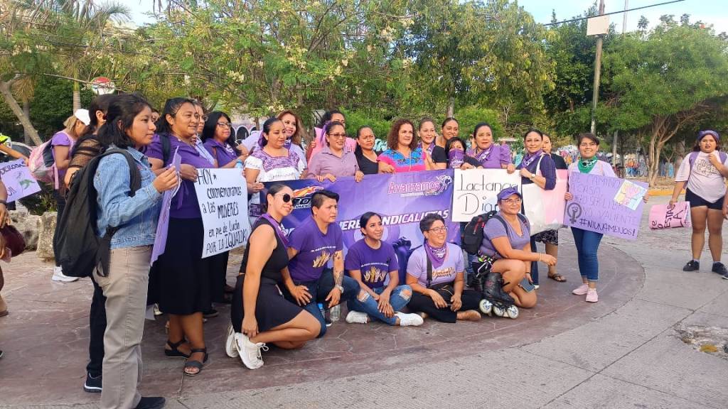 Más de 500 mujeres se congregaron esta tarde en la Quinta Avenida de esta ciudad para marchar en conmemoración del Día Internacional de la Mujer, con la exigencia de que se ponga fin a los feminicidios y a la violencia de género.