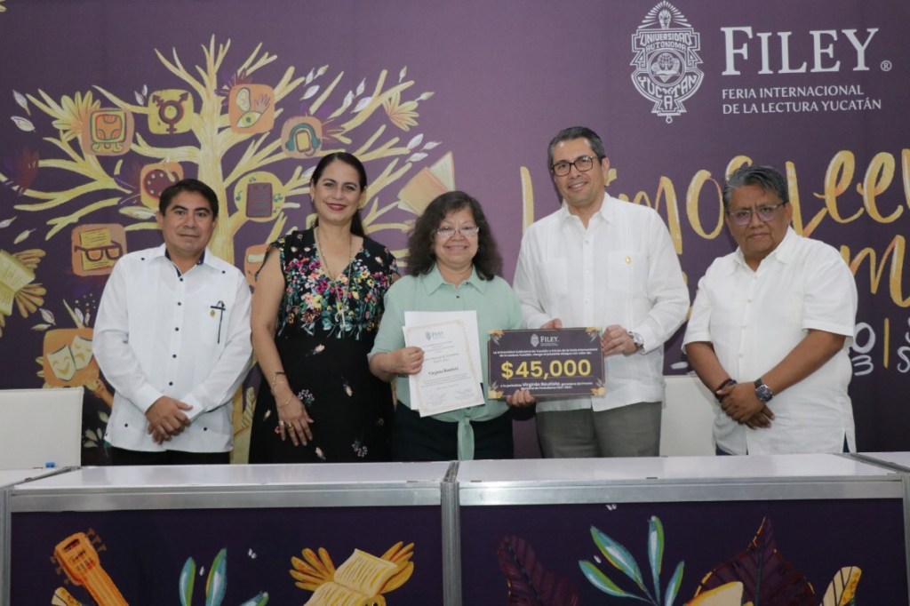 “Este es un reconocimiento a una persona, pero, sobre todo, al periodismo cultural, que tanta falta hace para seguir formando lectores críticos”, sostuvo Virginia Bautista al recibir el Premio Nacional de Periodismo Cultural FILEY 2023, en el marco de la undécima edición de la Feria Internacional de la Lectura Yucatán 2023 (FILEY).