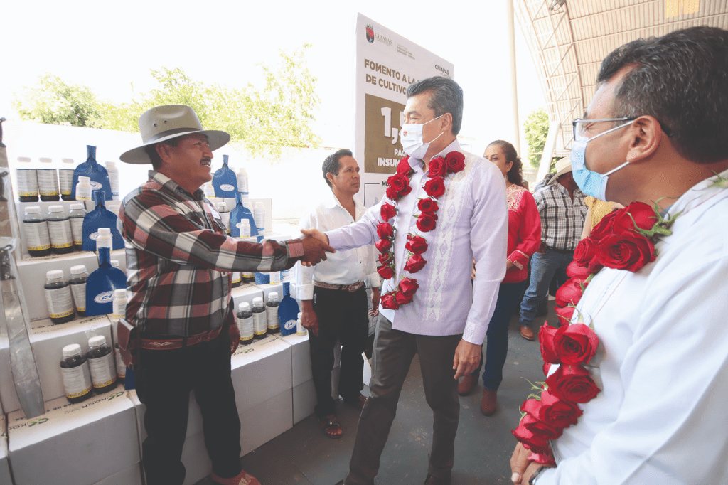 Productoras y productores agrícolas y pecuarios de San Lucas, Acala, Chiapilla, Totolapa y Emiliano Zapata, recibieron de manos del gobernador Rutilio Escandón Cadenas insumos que fortalecerán la agricultura y la ganadería en la Región De Los Llanos, ya que, dijo, son actividades fundamentales para la soberanía alimentaria y la economía de todo el estado.