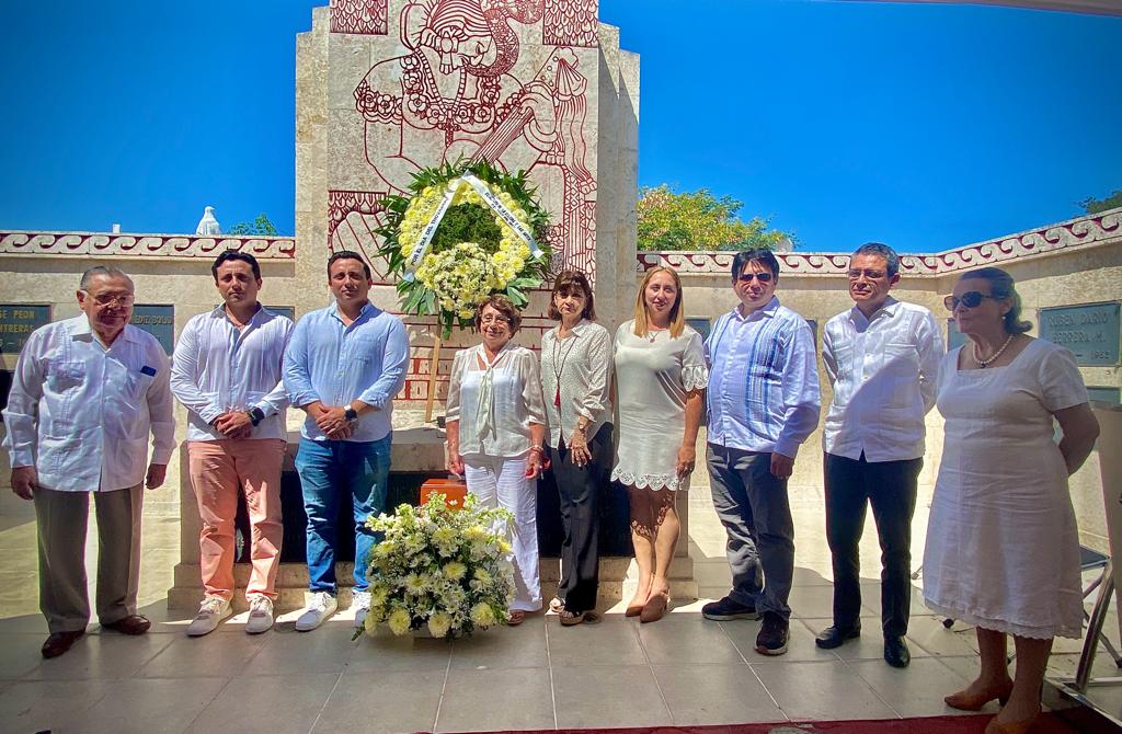 Igual, autoridades, amistades y familiares hicieron una ofrenda floral y guardia de honor, para después depositar las cenizas en una de las criptas del monumento, junto a figuras como Antonio Mediz Bolio, Estela Puerto de Pompeyo, Juan Acereto, Pepe Domínguez, Ligia Cámara, Ricardo López Méndez, Pastor Cervera y Coqui Navarro, por citar algunos.