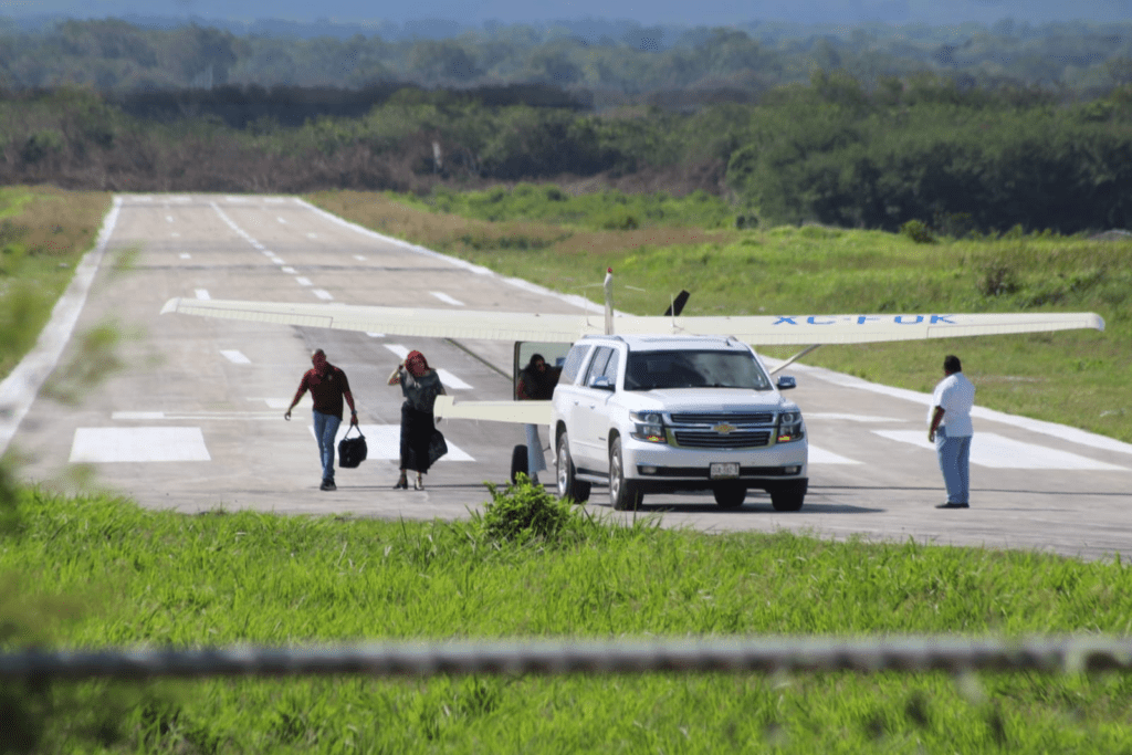 Ayer por la mañana Sansores San Román aterrizó en la pista, que es sólo para su uso particular, porque eso de que es de utilidad pública, es totalmente falso, porque nadie, ninguna gente común, como los candelarenses, pueden usar ese aeródromo.