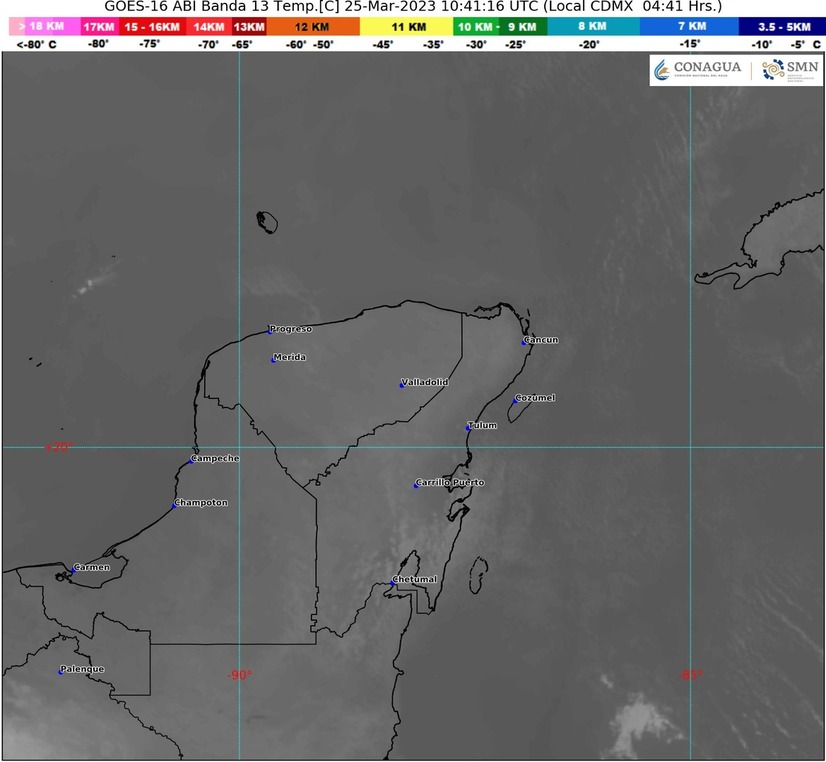 El Servicio Meteorológico Nacional (SMN) pronostica que en Quintana Roo podrían presentarse lluvias aisladas (0.1 a 5 mm) y temperaturas máximas de 29 a 35 grados Centígrados.