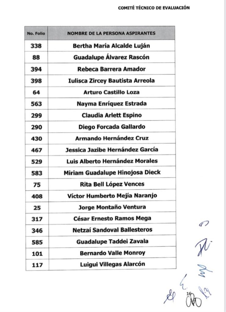 Agencia IDMx// Ciudad de México.- Hace unas horas el Comité Técnico de Evaluación dió a conocer la lista de los 20 aspirantes a Consejeros del INE que han tenido a bien seleccionar, de los que la Cámara de Diputados habrán de elegir a cuatro; dos cosas llaman la atención, a saber, el voto particular por una de las integrantes mediante el cuál prácticamente veta a seis de los aspirantes seleccionados, entre ellas a la que dan por un hecho será electa Consejera Presidenta, la de línea, la Bertha María Alcalde Luján.