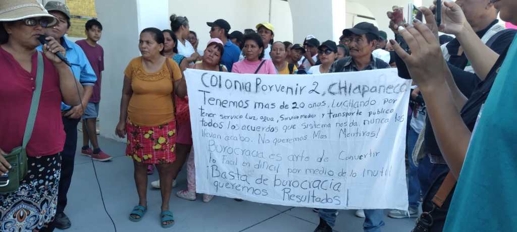 Con pancartas en mano, habitantes de las colonias El Jordán, Valle Verde, La Chiapaneca, El Porvenir y Santa Ana fijaron una reunión con autoridades municipales en este mismo espacio, el próximo 17 de abril, a las 9 de la mañana, con el fin de «llegar a un arreglo y que nos digan cuándo vamos a ver los resultados».