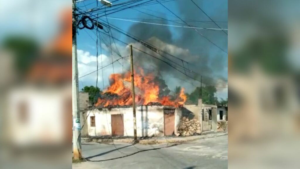 Casa con techo de huano ubicada en la calle 23 entre 16, en el barrio de San Antonio, Hecelchakán, fue consumida por el fuego. Sin lesionados.