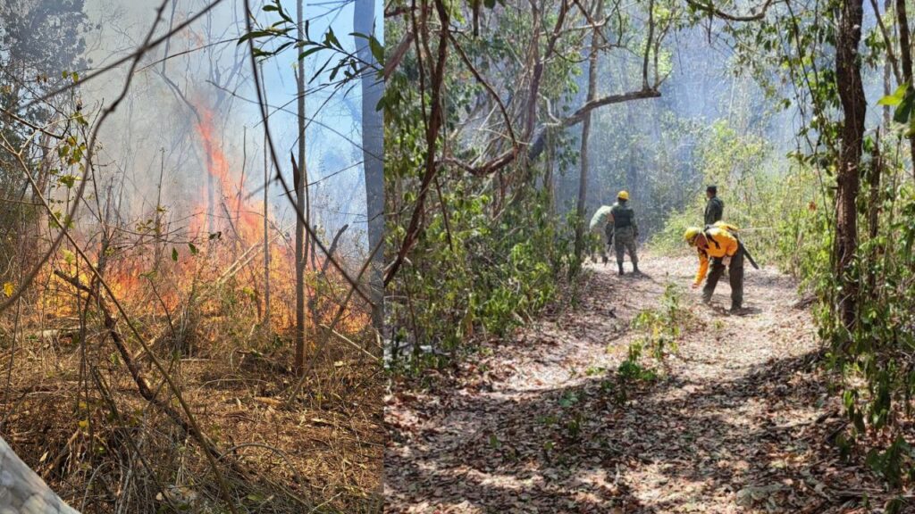 El siniestro en Xbonil tiene un estimado de 800 hectáreas afectadas de selva baja espinosa subperennifolia, avance del 70% en control y 50 porcentual en liquidación. Participan 58 combatientes de brigadas de Conafor, Semabicce Pablo García, Plant for the Planet A. C., y M4 Xpujil.