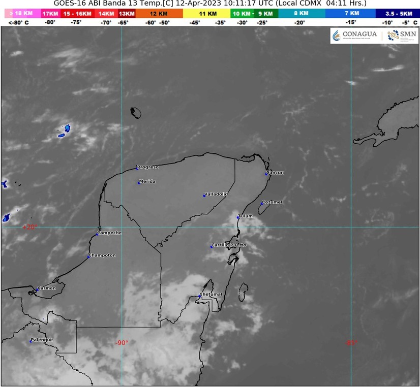 Para la Península de Yucatán habrá cielo medio nublado a nublado durante el día, con probabilidad de lluvias puntuales fuertes en Yucatán y Quintana Roo, así como chubascos en Campeche; ambiente templado por la mañana y muy caluroso durante la tarde; viento del este y noreste de 10 a 25 km/h con rachas de hasta 40 km/h en la región.
