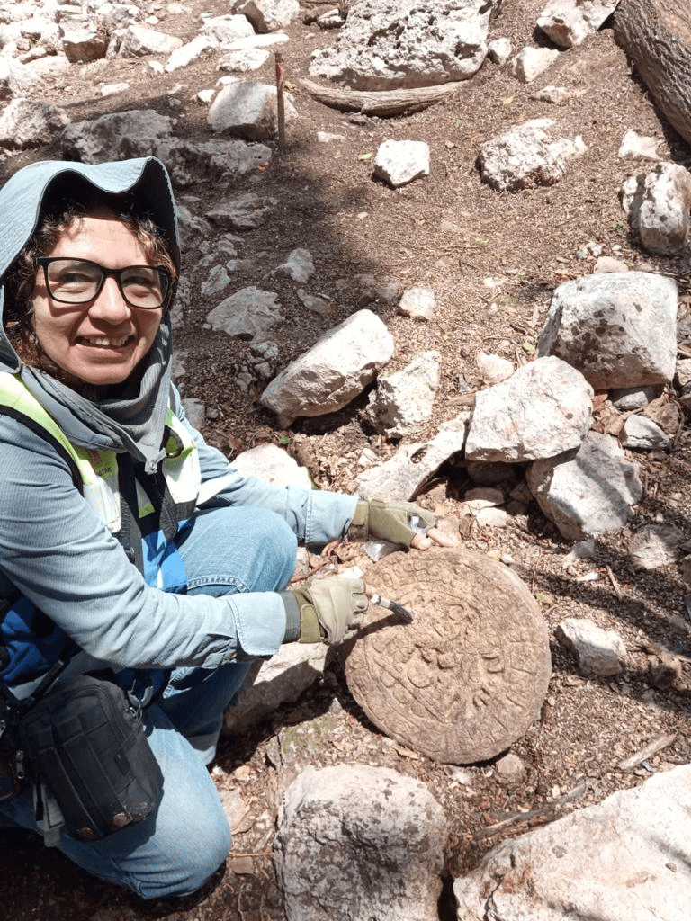 arqueóloga Lizbeth Mendicuti Pérez, dentro el conjunto arquitectónico Casa Colorada de la