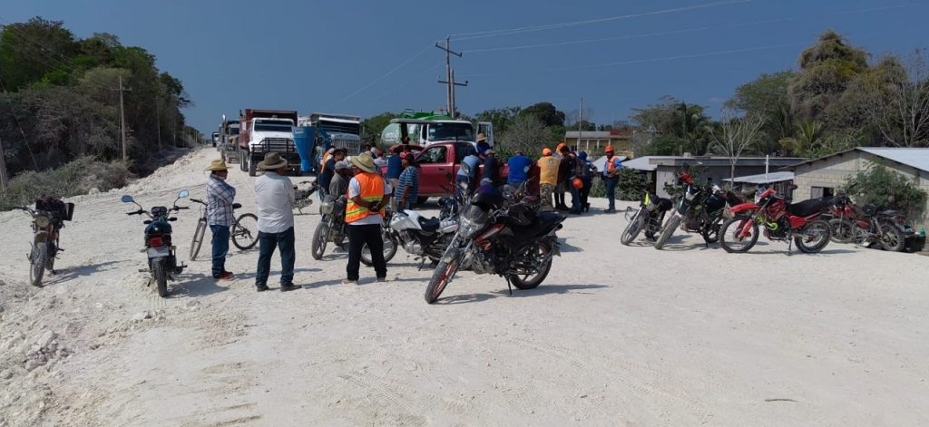 Piden que rieguen agua al menos dos veces al día, pues “estamos cansados de comer polvo. No estamos contra el Tren Maya, exigimos que no nos causen afectaciones, eso es todo”.