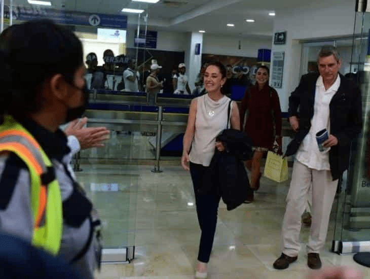 En los pasillos de la terminal, fue recibida con un abrazo por la Secretaría de Energía, Rocío Nahle García, y por el gobernador del estado de Veracruz, Cuitláhuac García Jiménez.