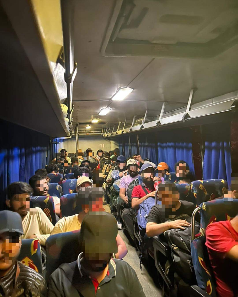 De los 56 inmigrantes, 40 son indios, 15 guatemaltecos y una salvadoreña. De ese total seis son mujeres, una de ellas embarazada, y dos son menores de edad.