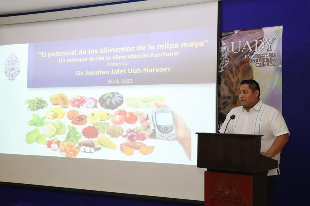 Posterior a la inauguración, se llevó a cabo la conferencia magistral “Potencial de los alimentos de la milpa maya y el solar maya en la prevención de la diabetes”, impartida por el Dr. Jonathan Uuh Narvaez, quien destacó que la milpa maya tiene una gran riqueza de alimentos que benefician la salud de las personas con diabetes en la península de Yucatán.