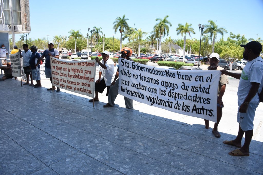 Hartos de la falta de resultados, la nula voluntad para escucharlos y el abandono al sector, pescadores de Lerma protestaron en Palacio de Gobierno para exigir la rehabilitación del refugio pesquero de Kila y mayor vigilancia para combatir la depredación.