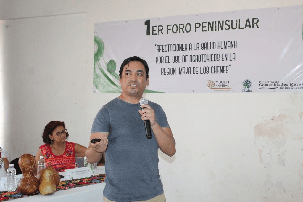 El también investigador de la Conacyt presentó su ponencia “Plaguicidas altamente peligrosos en alimentos de consumo local de Hopelchén” en el Primer Foro Peninsular, con el tema “Afectaciones a la salud humana por el uso de agrotóxicos en la región maya de Los Chenes”, que organizó el Colectivo de Comunidades Mayas de Los Chenes a través de la organización Much Kambal, A.C.