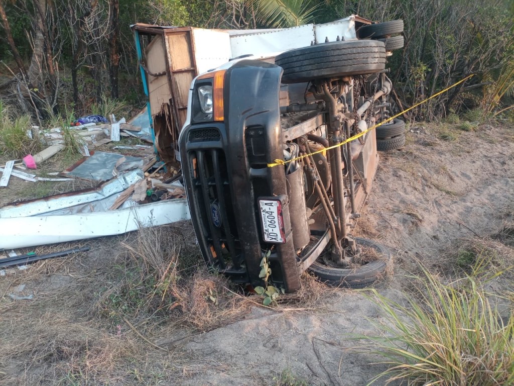 Un grupo de personas rapiñó vitropisos y fierro, luego de que el chofer de una camioneta volcó sobre el kilómetro 96 del tramo carretero Sabancuy-Champotón, cerca de Punta Xen, pero no lograron saquearlo al llegar de paso policías estatales.