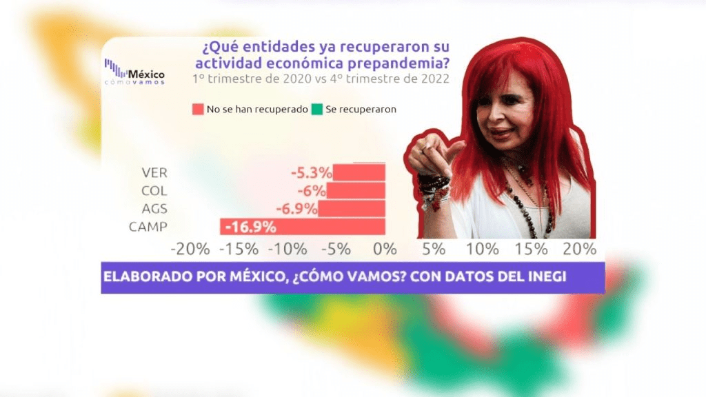 De las 12 entidades federativas que no han recuperado su actividad económica prepandemia, con relación al primer trimestre de 2020 y comparado al cuarto trimestre del 2022, Campeche fue el de peor desempeño, situándose en el último lugar a nivel nacional, al registrar disminución del 16.9 por ciento.