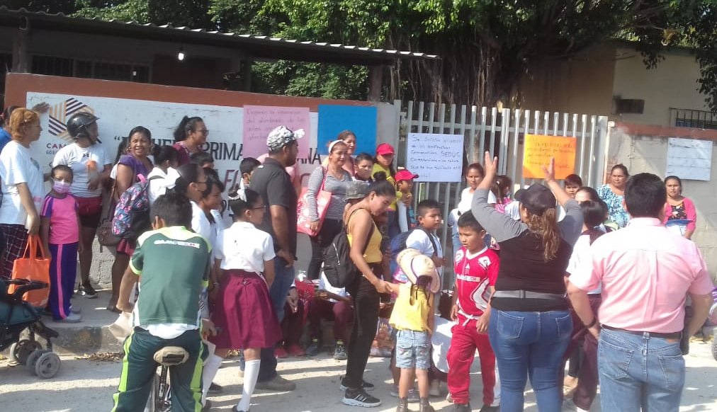 ESCÁRCEGA.— Molestos por los constantes robos de cablería en la Escuela Primaria “María del Pilar Torres Acuña”, de la colonia Carlos Salinas de Gortari, padres de familias se apoderaron del colegio sin permitir la salida del director Freddy Ariel Tah Pat.