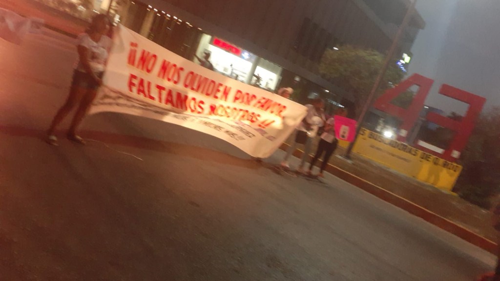 Cancún.- Esta noche, integrantes del colectivo «Madres Buscadoras de Quintana Roo» bloquearon la avenida Tulum, a la altura del antimonumento por los 43 desaparecidos de Ayotzinapa. para denunciar presuntas negligencias de la Fiscalía General del Estado (FGE) para atender el caso de un niño desaparecido.