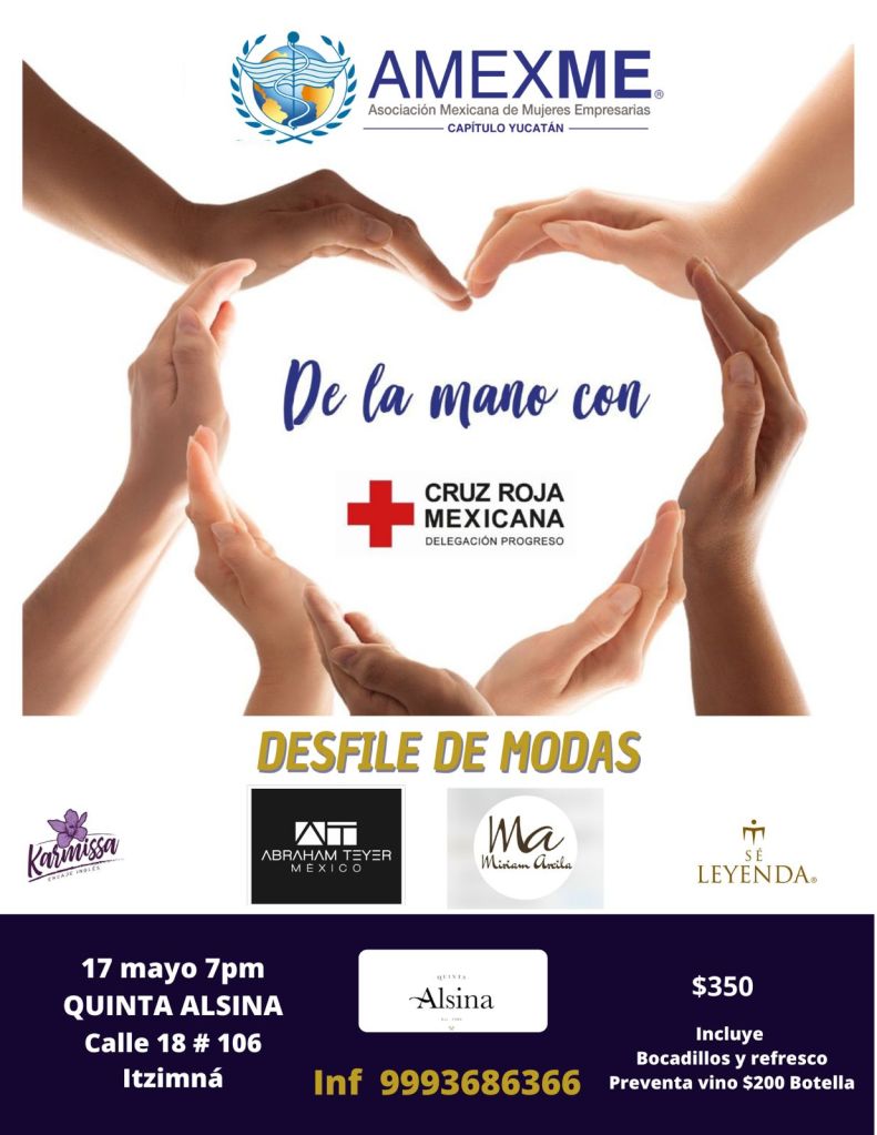 “Amexme de la mano con Cruz Roja Mexicana Delegación Progreso” es el nombre del desfile de modas que organiza la Asociación Mexicana de Mujeres Empresarias (Amexme), Capítulo Yucatán como parte de su Responsabilidad Social, en esta ocasión en beneficio de la benemérita institución en el puerto.