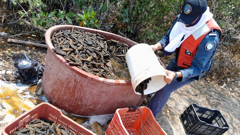 Cabe destacar que el pepino de mar se encuentra en veda permanente desde el 2013, debido a su intensa depredación, y no se ha recuperado el número necesario para permitir nuevamente su pesca.
