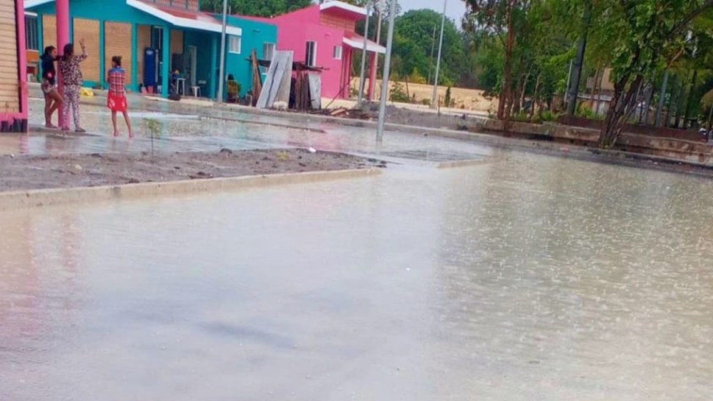 Luego de que en la inauguración una regidora del Municipio le exigiera a la gobernadora corregir las deficiencias, la lluvia de este domingo por la mañana demostró que las fallas persisten y las familias que ocupan el fraccionamiento mantienen problemas.