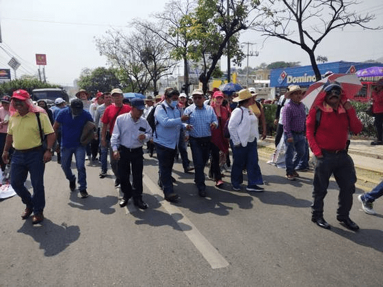 El secretario general de la sección magisterial, Isael Gonzalez Vazquez, encabeza una marcha desde la fuente Diana la Cazadora por el boulevard Angel Albino Corzo y avenida central para llegar al zócalo de Tuxtla Gutiérrez exigiendo una mesa de negociación y acuerdos con la Secretaria de Educación (SE), Rosa Aidé Domínguez Ochoa.