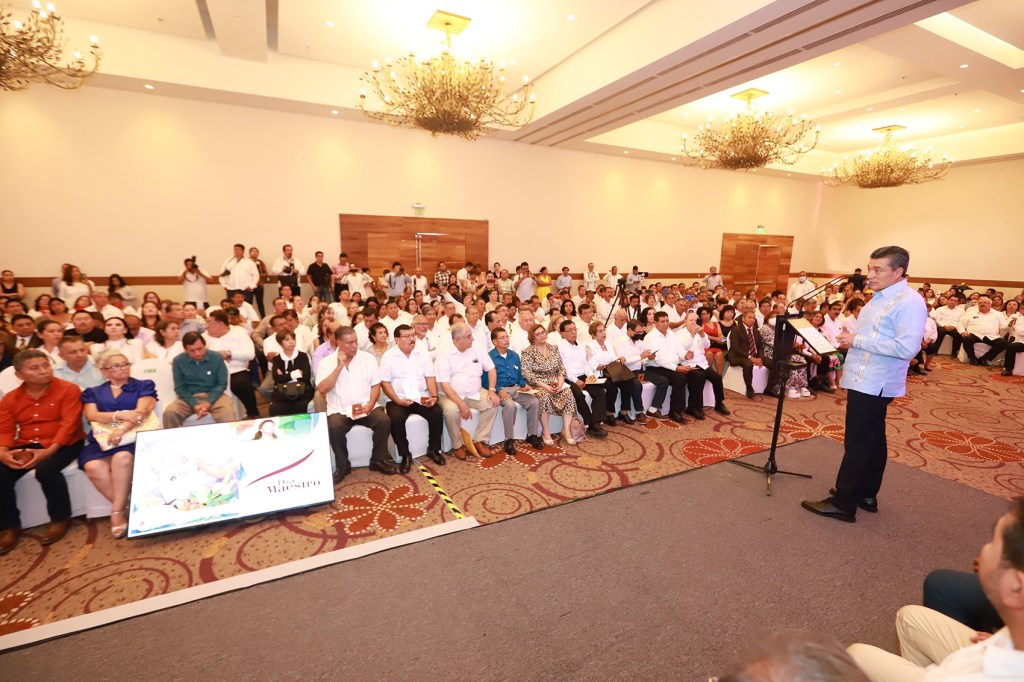 “En México y Chiapas, las maestras y los maestros son combatientes permanentes del analfabetismo, porque con su sabiduría dentro de las aulas hacen lo posible para sacar adelante el desarrollo y progreso de los pueblos. Donde quiera que se encuentren, hay avance y honran con dignidad su labor al cimentar bases firmes en favor de la educación de la niñez y la juventud”, afirmó el gobernador Rutilio Escandón Cadenas en el marco de la celebración conmemorativa al Día de la Maestra y el Maestro.
