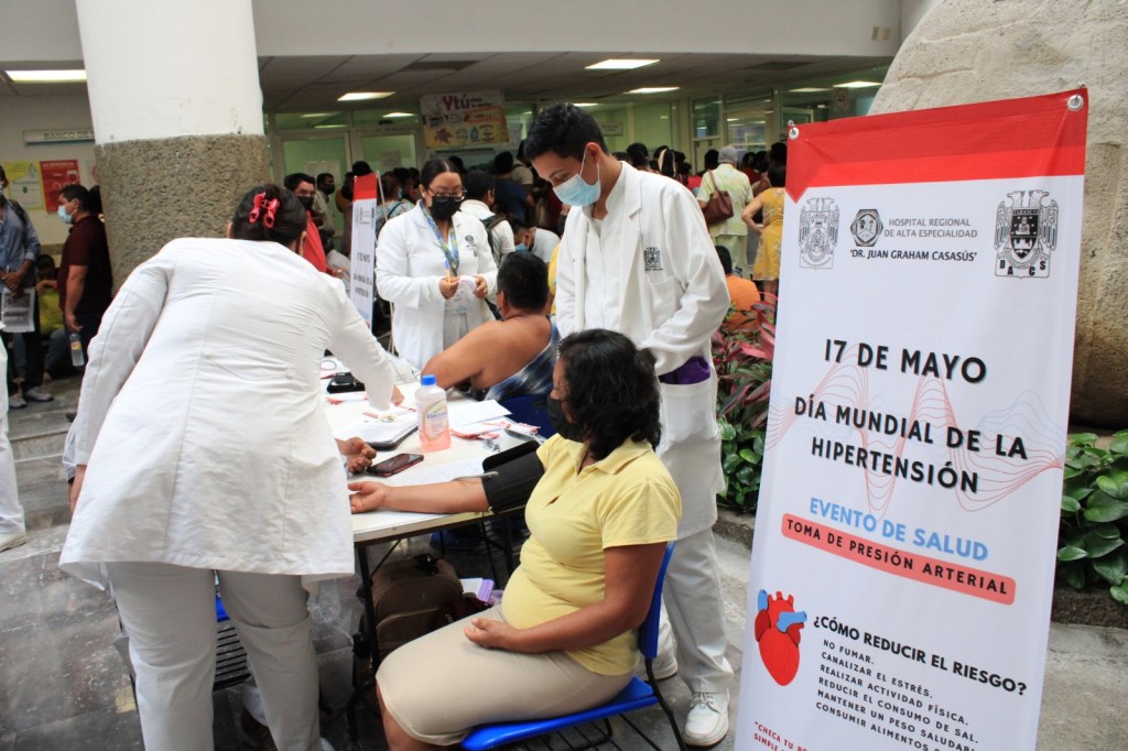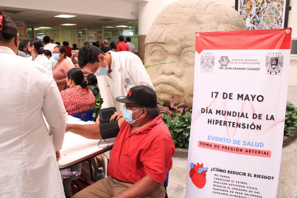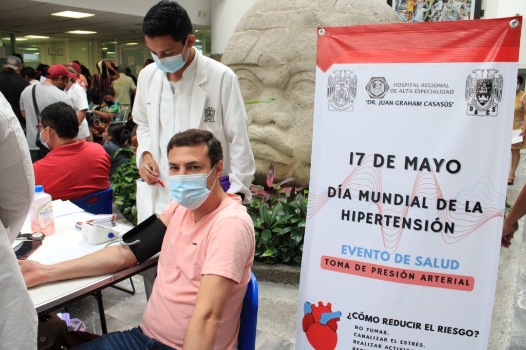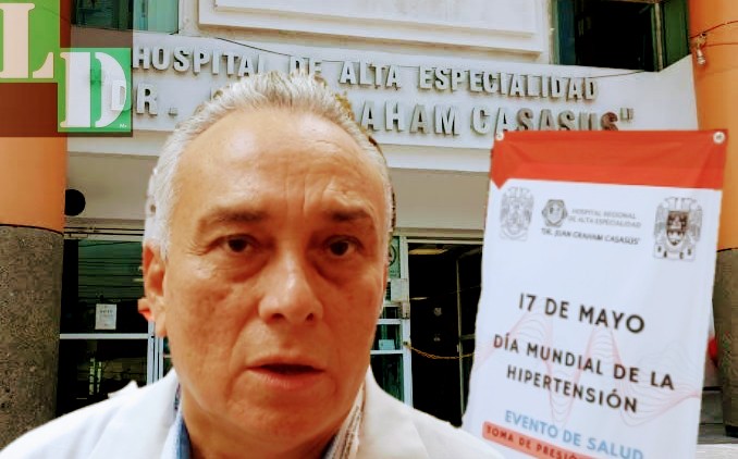 La hipertensión hoy en día no es un evento aislado, entre el 20 y 30 por ciento de los pacientes hipertensos crónicos mal controlado, a la larga padecen una arritmia grave que se llama fibrilación audicular y muchos de ellos terminan con evento cerebrovasculares, indicó el Cardiólogo Efrén Rodríguez Hernández al conmemorar el Día Mundial de la Hipertensión Arterial Sistémica en el Hospital Regional de Alta Especialidad “Dr. Juan Graham Casasús”.