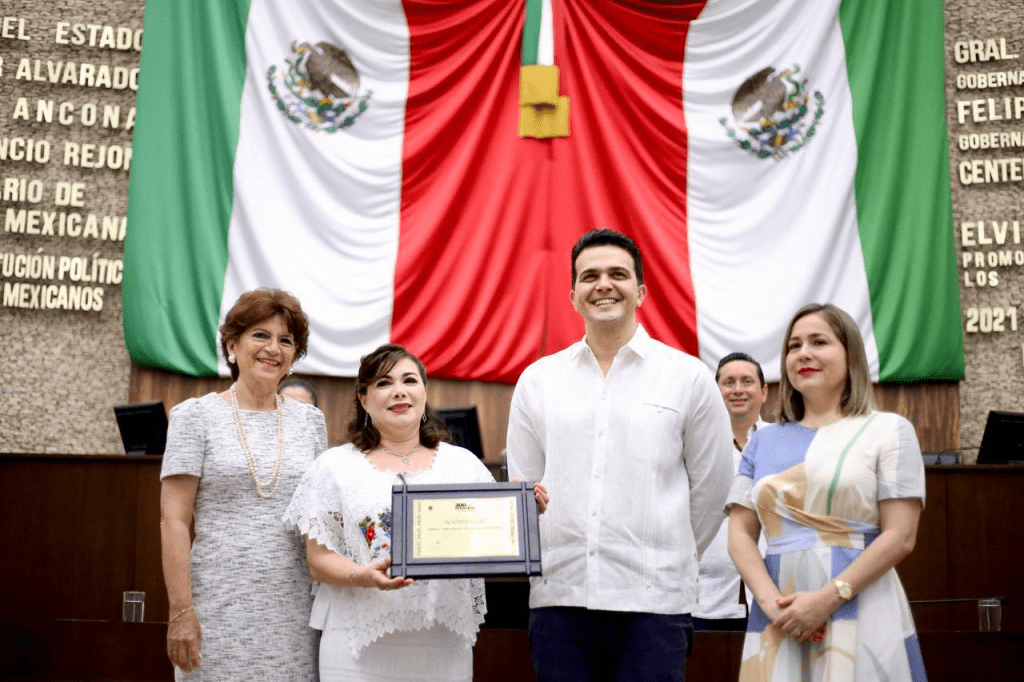 Para la entrega del mérito se contó con la presencia de la secretaria General de Gobierno, María Fritz Sierra y la magistrada presidenta del Tribunal Superior de Justicia y del Consejo de la Judicatura, María Carolina Silvestre Canto Valdés, así como de los diputados integrantes de la LXIII Legislatura.