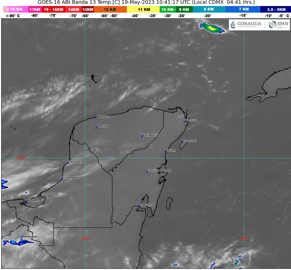 Para la Península de Yucatán habrá cielo con nubes dispersas por la mañana y medio nublado por la tarde con intervalos de chubascos y descargas eléctricas en la región; ambiente cálido durante la mañana y caluroso a muy caluroso por la tarde; viento de componente este de 10 a 30 km/h con rachas de hasta 40 km/h en la región.