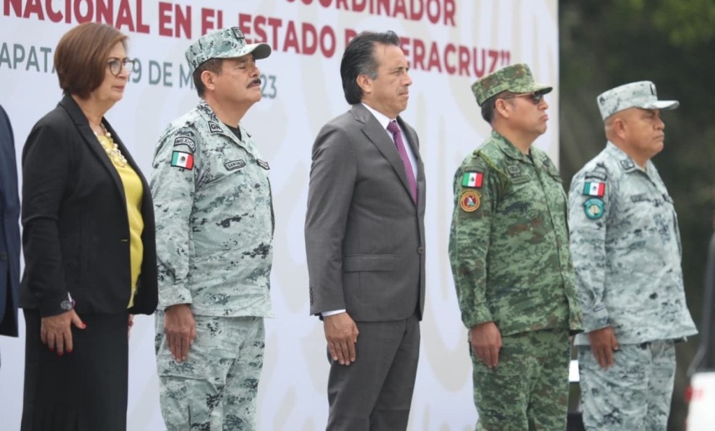Como muestra de respaldo y disposición para seguir trabajando por la seguridad y el bienestar de la población, el gobernador Cuitláhuac García Jiménez participó en la toma de posesión y protesta de bandera del comisario Rogelio García Pérez, nuevo coordinador estatal de la Guardia Nacional en Veracruz.