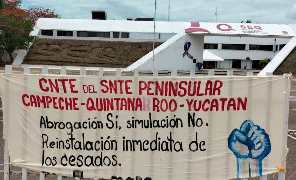 Integrantes de la Coordinadora Nacional de los Trabajadores de la Educación (CNTE) en Quintana Roo iniciaron hoy un plantón indefinido en las instalaciones de la Secretaría de Educación, para exigir la reinstalación de ocho docentes en el estado que fueron cesados de su cargo de manera injustificada.