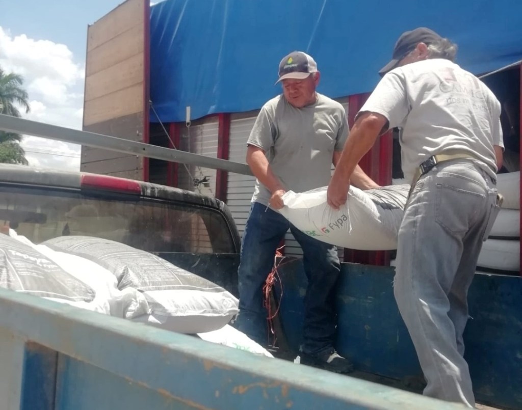 La compañía trajo el insumo al Municipio y los productores acudieron con camionetas para recibirlo.