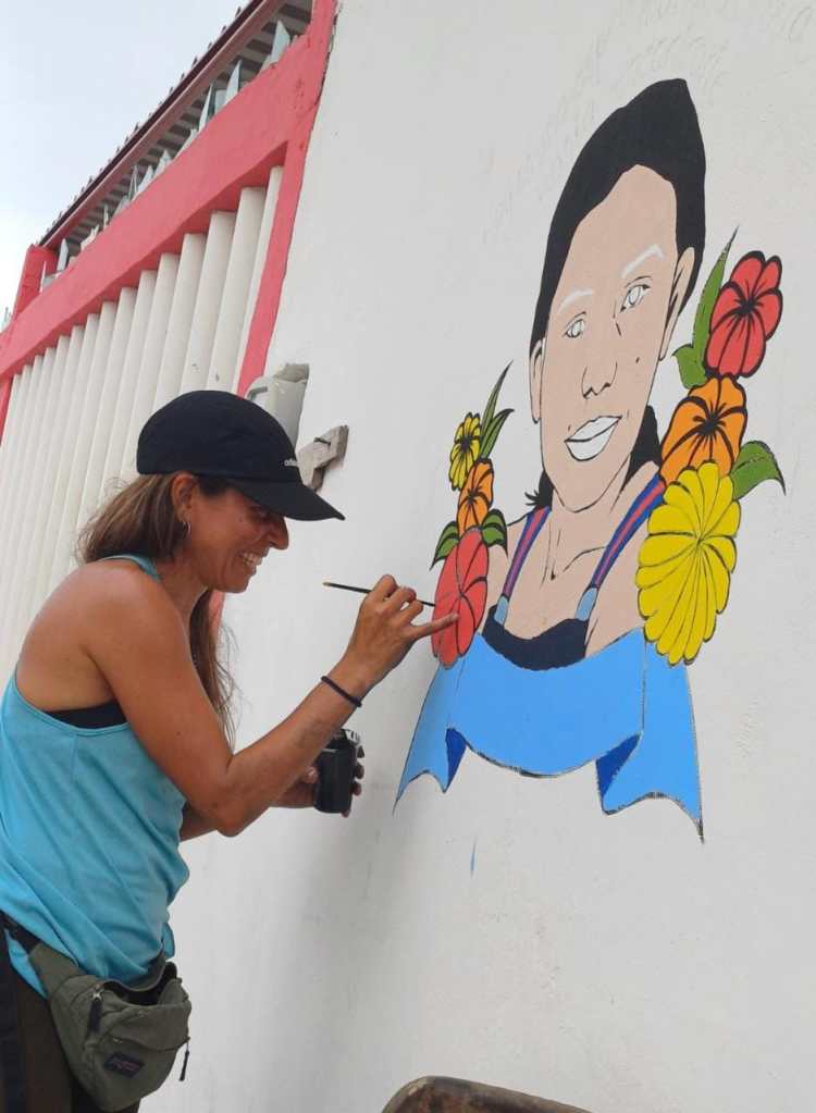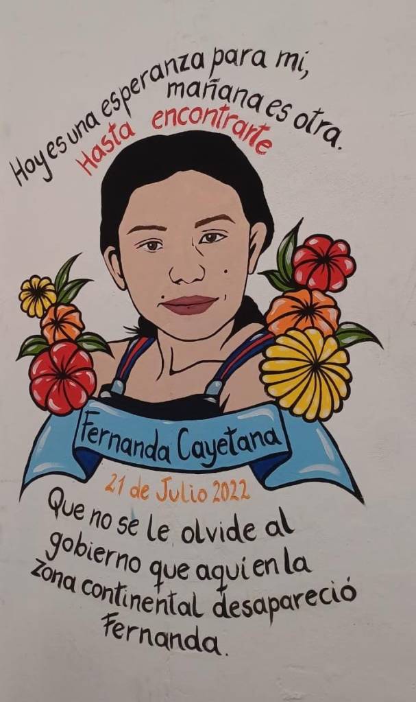 Esta tarde, Flor Gisel, artista de esta ciudad, realizó un mural en honor a Fernanda Cayetana, a una cuadra de la casa de Marco Antonio «N», alias «El Taquero», presunto responsable de la desaparición de esta menor, ocurrida hace más de 10 meses, en la zona continental de Isla Mujeres.