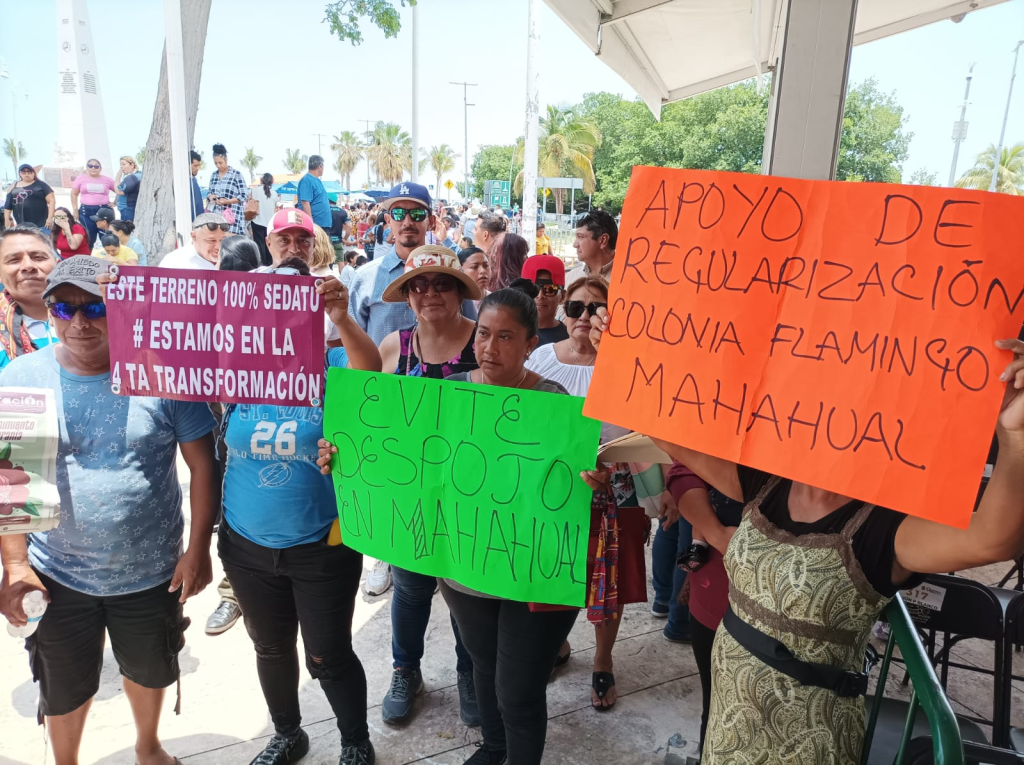 Esta mañana, habitantes de los asentamientos Los Flamingos, Las palmas, Tamalcab, Kilómetro 55, entre otros ubicados en Mahahual, iniciaron una manifestación pacífica fuera del Palacio de Gobierno, en Chetumal, para pedirle al presidente de la república, Andrés Manuel López Obrador, que frene la intención de la Agencia de Proyectos Estratégicos de Quintana Roo (Agepro) de despojarlos de las tierras en donde habitan.