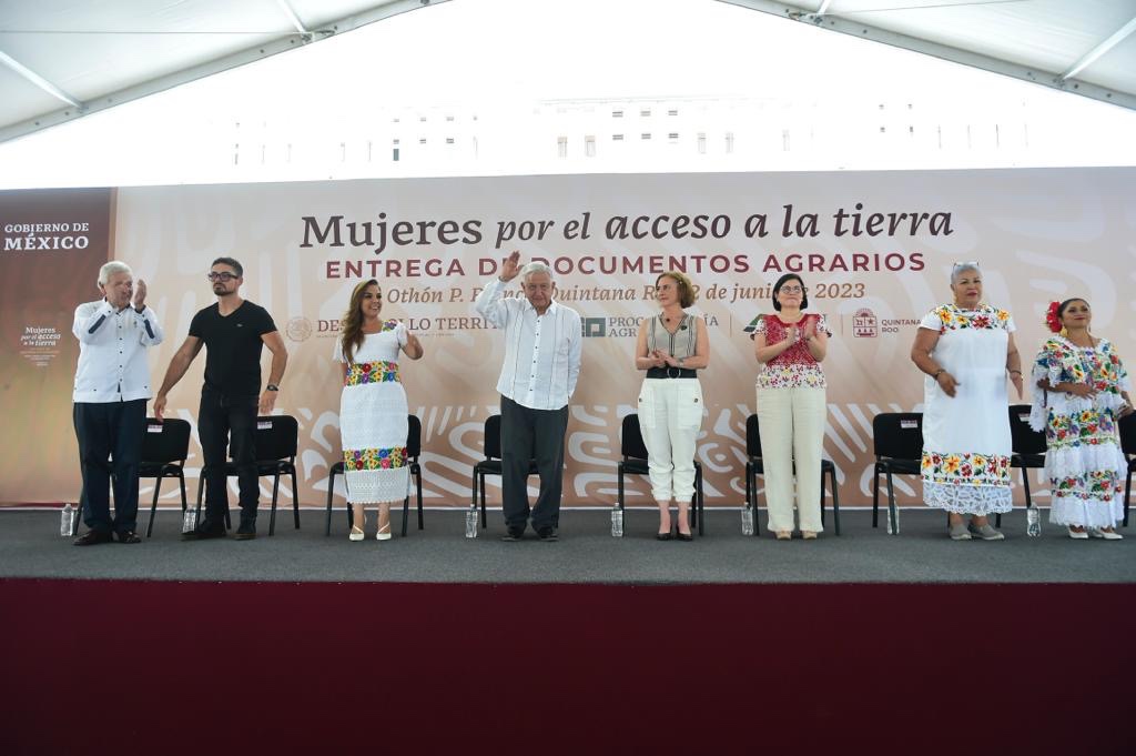 Y es que, al iniciar la gira de trabajo por Quintana Roo ayer viernes, el presidente Andrés Manuel López Obrador entregó certificados agrarios con el objetivo de brindar certeza jurídica y autonomía económica a las propietarias.
