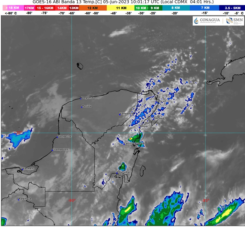 El Servicio Meteorológico Nacional (SMN) informó que debido a un canal de baja presión y la entrada de humedad del Golfo de México y el Mar Caribe, originará lluvias muy fuertes a puntuales intensas (75 a 150 mm) en Quintana Roo.