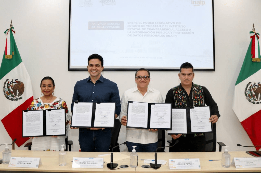 En el marco del aniversario del Instituto Estatal de Transparencia, Acceso a la Información Pública y Protección de Datos Personales (Inaip-Yucatán), se firmó un Convenio de Colaboración con el Congreso del Estado, a fin de realizar acciones a favor de la transparencia y protección de datos personales.