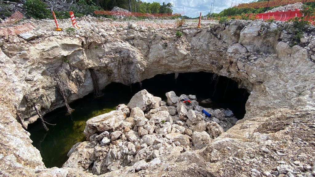 Mediante su cuenta de Twitter, Guillermo DChristy, el espeleólogo y consultor en calidad de agua, mostró mediante un video el socavón que abre una ventana a la superficie de lo que parece ser todo un sistema bajo esta zona que conecta al menos dos cenotes.