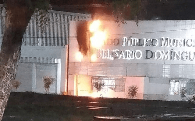 Lugareños afirmaron que escucharon un fuerte sonido, como de un corto circuito para enseguida ver como las llamas se apoderaban de la entrada principal de la central de abastos Belisario Domínguez.