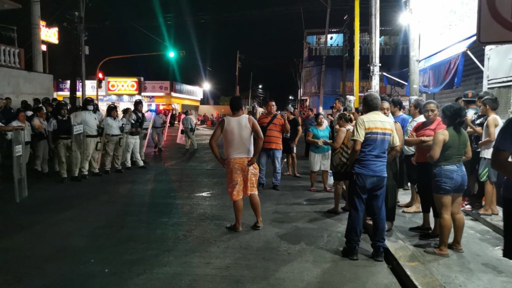 A la primera manifestación, en la calle 37 por 66 de la colonia Primero de Mayo, llegaron el subsecretario del Gobierno Estatal, Daniel Gaspar López Lanz, y el secretario del Ayuntamiento, César Marín Reyes, quien encabezó el grupo de antimotines a cargo de Samantha Bravo Muñoz.