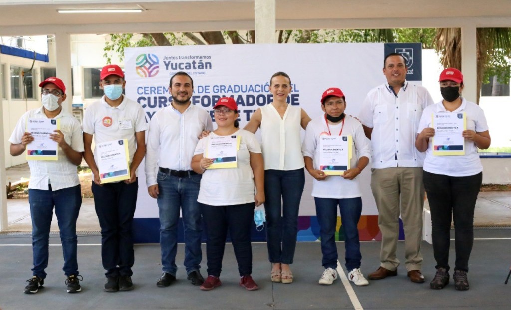 Yenni Carolina Fernández Cortés, Lidia Guadalupe Segovia Santos, Paola Oliva Bravo García, José Armando Cruz Alipi y Gustavo Moreno Caamal, recibieron sus diplomas como egresadas y egresados del Centro, con el perfil de “ayudante de tienda” para poder integrarse formalmente al campo laboral.