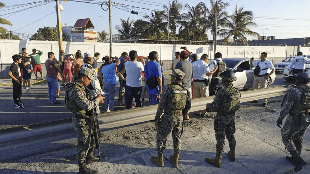 Mientras dialogaban, a manera de presión llegaron al lugar policías, estatales y municipales, elementos de la Guardia Nacional, Marina y Ejército Mexicano.